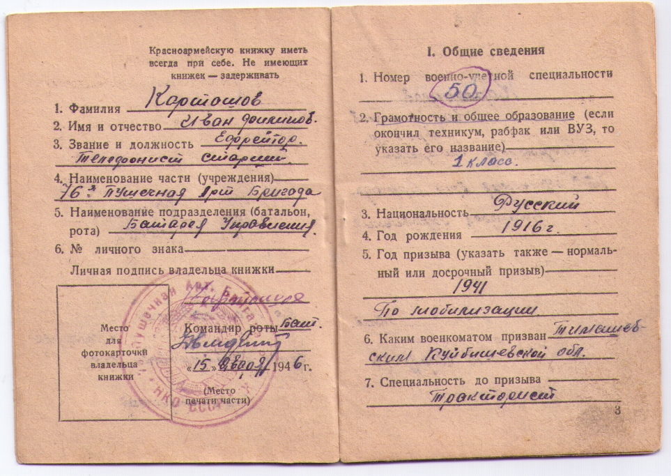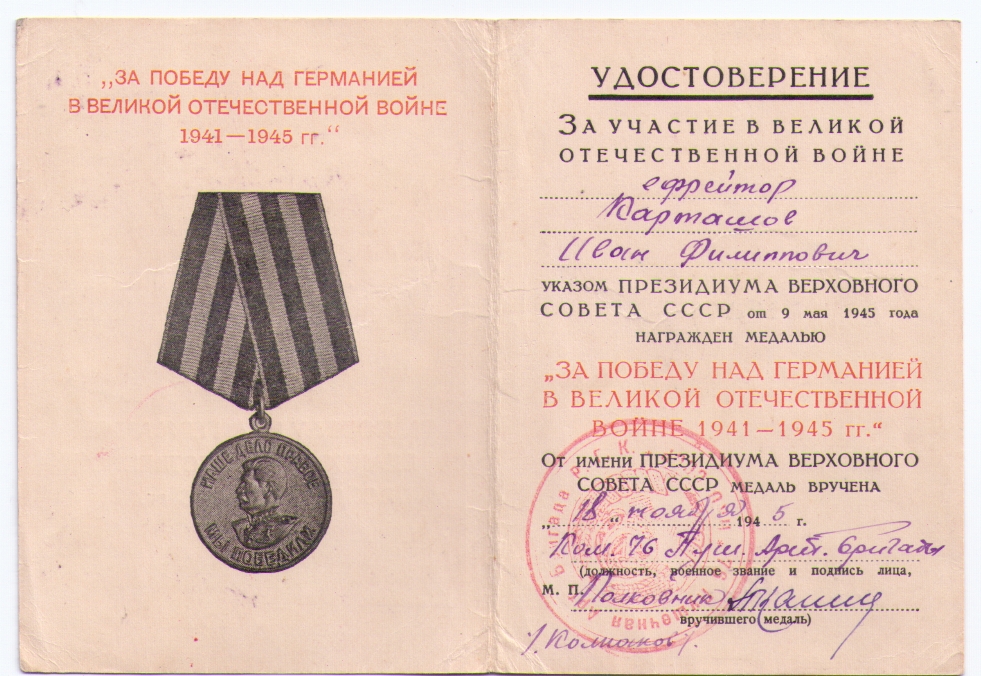 Фото и документы передала жена, Карташова Антонина Павловна